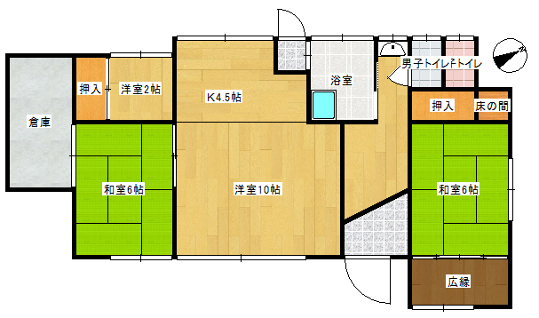 間取内容 | K4.5畳 1階 洋室10畳 1階 洋室2畳 1階 和室6畳 1階 和室6畳 1階 | ||